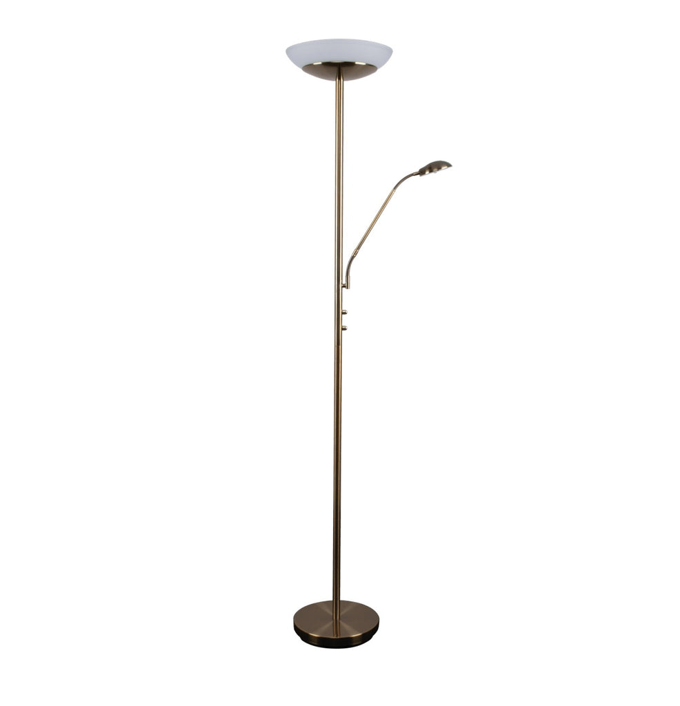 EDEN-FL Mother & Child floor lamp Series is stylish, modern and multi-functional. The popular design features an 18W LED uplighter (Mother) and a 5W task light (Child). Available in Black, Satin Chrome and Antique Brass finishes, with a white frosted glass for the uplighter. Dimmable dials available for both lights, producing a nice warm 3000K Warm White LED colour temperature. This simple design offers a suitable appearance for most modern interior decors, commonly used in living rooms, studies and entertainment areas as a feature lamp.