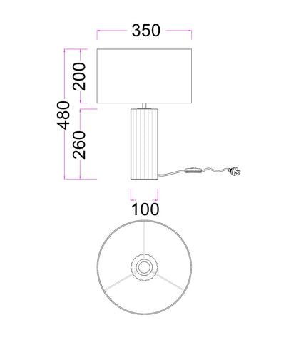 Sagitta Ribbed Travertine Lamp with Fabric Drum Shade